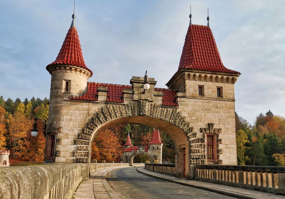 Přehrada se před vámi vynoří znenadání jako zámek v pohádce o Šípkové Růžence, ale ona vlastně je jako z pohádky. Je prostě krásná a její věžičky stojí za podívání!“.